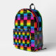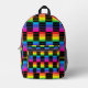Go back to school in style with this rainbow plaid print backpack. Fun book bag features a cool abstract plaid pattern in all the colours of the rainbow and black, with black details. Original digital artwork by Buttercup's Clothing and Collectables.