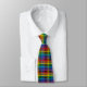 Abstract digital art of lighter coloured rainbow stripes outlined by the thinner solid colour, then crisscrossed to make it appear plaid-like, against a black background.