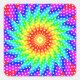 A brightly coloured digital kaleidoscope art design with white polka dot pattern. Colours include red, yellow and orange in a sun-like motif at the centre, with green, turquoise, blue and purple radiating outwards (though the outer colours may not be visible on certain products). A symmetrical abstract digital artwork with complex psychedelic structure and hypnotic spotty pattern. Note that any distortion in the preview image is caused by compression artefacts, and won't be printed.