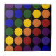 Rows of rainbow coloured polka dots cover a black background. The offset rows form diagonals of each colour: violet, indigo, blue, green, yellow, orange, and red.