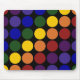 Rows of rainbow coloured polka dots cover a black background. The offset rows form diagonals of each colour: violet, indigo, blue, green, yellow, orange, and red.