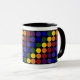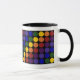 Rows of rainbow coloured polka dots cover a black background. The offset rows form diagonals of each colour: violet, indigo, blue, green, yellow, orange, and red.