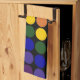 Rows of rainbow coloured polka dots cover a black background. The offset rows form diagonals of each colour: violet, indigo, blue, green, yellow, orange, and red.