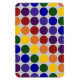 This custom item features rows of rainbow coloured polka dots on a grey background. The grey has an almost metallic feel to it. The offset rows form diagonals of each colour: violet, indigo, blue, green, yellow, orange, and red.