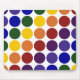 Rainbow coloured polka dots are arranged in rows on a white background. The offset rows form diagonals of each colour: violet, indigo, blue, green, yellow, orange, and red.