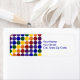Rainbow coloured polka dots are arranged in rows on a white background. The offset rows form diagonals of each colour: violet, indigo, blue, green, yellow, orange, and red.