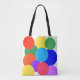 Colourful polka dot design using bright red, gorgeous greens, sunny yellow, rich purples, blue and orange beautifully displayed on this toe bag. The Customer can change the white background colour, move the polka dots, add more polka dots or remove some of the polka dots. Enjoy!