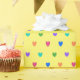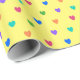 Rainbow polka hearts on yellow wrapping paper