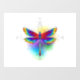 Bright, rainbow, polygonal dragonfly on white background, painted with watercolor.