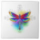 Rainbow Polygonal Dragonfly Ceramic Tile
