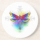 Bright, rainbow, polygonal dragonfly on white background, painted with watercolor.