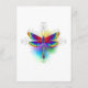 Bright, rainbow, polygonal dragonfly on white background, painted with watercolor.