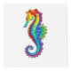 Artistically drawn, bright, rainbow, polygonal seahorse on white background. Bright tattoo.
