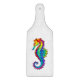 Artistically drawn, bright, rainbow, polygonal seahorse on white background. Bright tattoo.