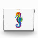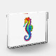 Artistically drawn, bright, rainbow, polygonal seahorse on white background. Bright tattoo.