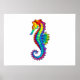 Artistically drawn, bright, rainbow, polygonal seahorse on white background. Bright tattoo.