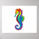 Artistically drawn, bright, rainbow, polygonal seahorse on white background. Bright tattoo.