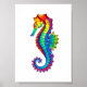 Artistically drawn, bright, rainbow, polygonal seahorse on white background. Bright tattoo.