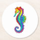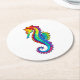 Rainbow Polygonal Seahorse Round Paper Coaster