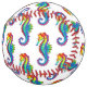 Artistically drawn, bright, rainbow, polygonal seahorse on white background. Bright tattoo.