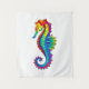 Artistically drawn, bright, rainbow, polygonal seahorse on white background. Bright tattoo.