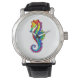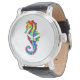 Artistically drawn, bright, rainbow, polygonal seahorse on white background. Bright tattoo.