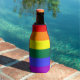 The six-colour version of the Gay Pride Flag is popular since 1979. The number of stripes was reduced to an even number to prevent middle colour from being hidden when hung vertically on lampposts. Indigo stripe was changed to royal blue stripe.