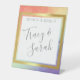 Rainbow Pride Gold Frame Wedding Save the Date Pedestal Sign