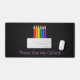 Desk Mat with pencils in the colours of LGBT (lesbian, gay, bisexual, and transgender people) rainbow stripes flag, gay pride lgbtqiap+ design, "These Are My Colours" template text, by pinkbrickroad