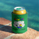 This Rainbow Pride Can Cooler features a flock of white sheep. In front of the flock is a singular sheep with the colours of the LGBTQ flag. The text reads, 'I'm The RAINBOW Sheep Of The Family.' On the back of the Can Cooler there's an image of the Rainbow Sheep and an are for custom text.