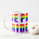 Rainbow Pride Text Art on Custom Colour Coffee Mug