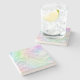 The coasters are gorgeous, a quality feel and heavy weight. They look like a precious archeological find. A rustic stone juxtaposed with a modern floral black and white print. I like the way the print goes slightly imperfect on the cut stone edges giving them a kind-of natural beauty.