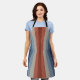 Abstract retro style reflected rainbow illustration with blue, beige, navy blue, brown, red and rust colour striped decoration