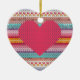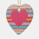 Rainbow retro hearts faux woollen knit valentine ceramic ornament