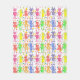 A fun and colourful fleece blanket featuring whimsical robots drawn and hand painted with watercolor in bright shades of pink, red, blue, green and yellow with a polka dot background. Cheerful home decor and great for kids!