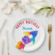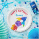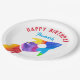 Rainbow Rocket Ship Outer Space Birthday Party Paper Plate