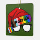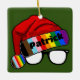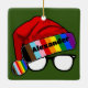 Rainbow Santa Hat with Glasses Ceramic Ornament