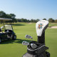 Add a pop of vibrant, artistic style to your golf bag with this Rainbow Scarab head cover. The design features a magnificent scarab beetle, its shell glowing with a spectrum of rainbow colours that flow and blend together like a watercolor painting. This unique design ensures your clubs are protected in style, making it easy to spot your bag on the course.