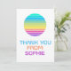 Send a futuristic thank you with this modern, minimal greeting card featuring a vibrant rainbow sci-fi design. Personalize it with your custom name for a unique and stylish expression of gratitude. Perfect for any occasion that deserves a standout thank you!