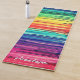 For the yoga lover. A lively, colorful rainbow inspired yoga mat which can be personalized to include the recipient's name which will appear in a script written font. A bold and colorful rainbow yoga mat for the vibrant yogi in your life.