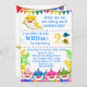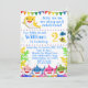 Celebrate your little shark's birthday! Features a white background with blue writing and rainbow-coloured sharks. All wording can be customised on the invitation. Bubbles, fishes, and corals add fun little details to the invitation. Great for any Under the Sea parties or shark parties. Graphics by Mujka.