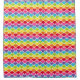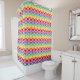 Assorted rainbow shells or scales pattern shower curtain in colours of yellow, blue, pink, purple, green, orange, and red on a white background.