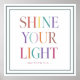 Searching for a vibrant and bold Christian print that calls believers to live brightly for your home, classroom, or church space? "Shine Your Light" is set in a bold all-caps rainbow typographic layout where each letter flows through a full spectrum — coral, orange, golden yellow, sage green, sky blue, and lavender — on a clean white background with a double teal border frame, rooted in Matthew 5:16 where Jesus calls every believer to let their light shine so that others may see and glorify the Father, making it a joyful and commanding declaration for living rooms, children's rooms, creative studios, and faith-driven spaces, as well as for other persons, events or occasions of calling and courage. Available on wall posters, ceramic mugs, tote bags, unisex t-shirts, and vinyl stickers — each carrying the reminder that the world needs exactly the light that only you carry. Contact the designer via the Message button for adjustments.