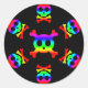 Rainbow Skull and Cross Bones sticker: This is a cute pattern of rainbow coloured Skull and Crossbones in a circle with a larger central rainbow pirate skull and crossbones with horizontal striping in a larger pattern with a background of black which can be customised to whatever colour you prefer.