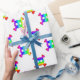 Rainbow Skulls and Crossbones wrapping papaer: a multitude of cute rainbow coloured Skulls and crossbones with the bright vivid colours alternating vertically and horizontally thru them on a white background witch can be customised to any colour you prefer. A spooky, funny and eye catching design sure to delight anyone who likes skulls.