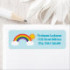 Address your envelopes with rainbow address labels with the sun over the rainbow and clouds and light sky blue background. Coordinates with our rainbow birthday party invitations. Personalise the design template with your return address.