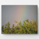 This awesome plaque features a beautiful landscape photo of a rainbow over the top of some trees. The photograph was taken immediately after a rainstorm to capture the vivid colours of the rainbow. The surrounding sky is grey with cloud cover.