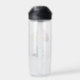 The bottle looks even better in real life. The ice cubes I put in lasts all day! I have my bottle with me all the time. It's summer and having something cold to drink feels amazing. With this bottle I always have something super cold. I have only tried the hot drink once and it lasted a long time as well. The color blue is a navy blue and the white printed on it is vibrant. It printed perfectly. I love my personalized smile water bottle.