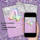 Rainbow sparkle glitter birthday party invitation for a 4 year old girl with elegant script writing and fun number foil balloons.