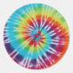 Photo of fabric dyed a bright, colourful rainbow spiral tie dye pattern.